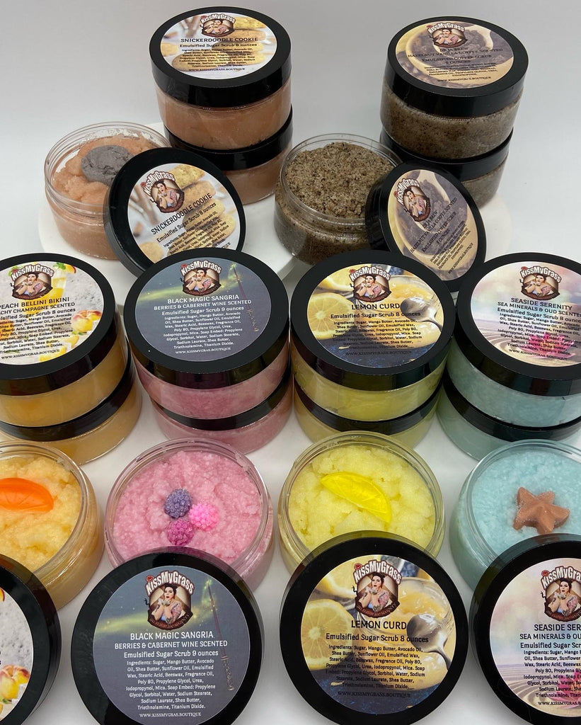 Our emulsified sugar scrubs will exfoliate away your dead skin while moisturizing with our luxury oils and butters to reveal your softest skin.